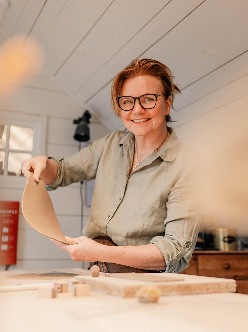 – I keramiken hittade jag nya dimensioner av formgivning. Det är taktilt, tredimensionellt och tacksamt att arbeta med. Att nu få knyta ihop säcken och sammanföra dessa två professioner känns ju som en riktig dröm!
